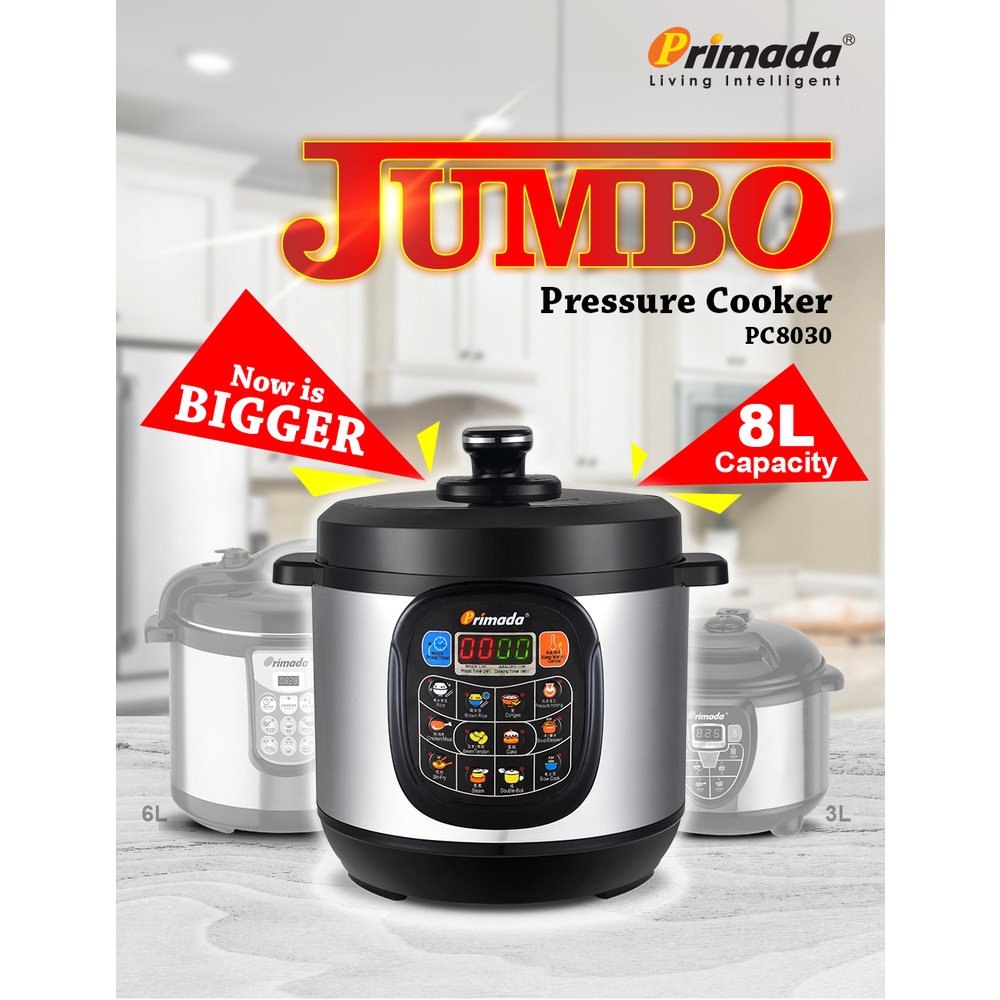 Go Shop Malaysia Primada Jumbo 8lt Pressure Cooker One Touch For All Bigger Capacity 8l Capacity 12 Menu Button Preset Timer 24 Hours Keep Warm Easy And Safe To